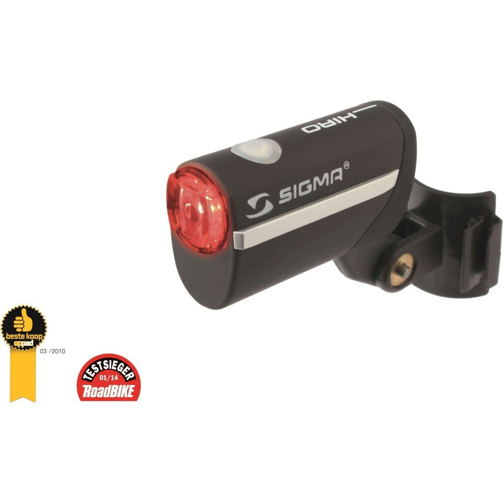 Sigma achterlicht Hiro 0,5W Powerled led incl. batterijen. Veiligheid met een cool design. In de slanke behuizing zorgt de HIRO voor een maximum aan veiligheid in het wegverkeer. Op basis van slechts 1 rode High Power-LED is het stijlvolle achterlichtvoorzien van een enorm verlichtingsvermogen tot 60 uur. Praktisch: Het lamphuis met rubbertouchoppervlak is demonteerbaar en zodoende gemakkelijk te beveiligen tegen diefstal. FEATURES- extreem lichte, rode 0,5 W High Power-LED- functies: permanent, knipperend- Batterij-indicator met 2 niveaus- Batterijen zeer eenvoudig verwisselbaar (incl. 2 x N)- Extreem lange brandtijd t/m 60 uur- Zeer snelle montage zonder gereedschap- Batterijen meegeleverd- Waterdicht