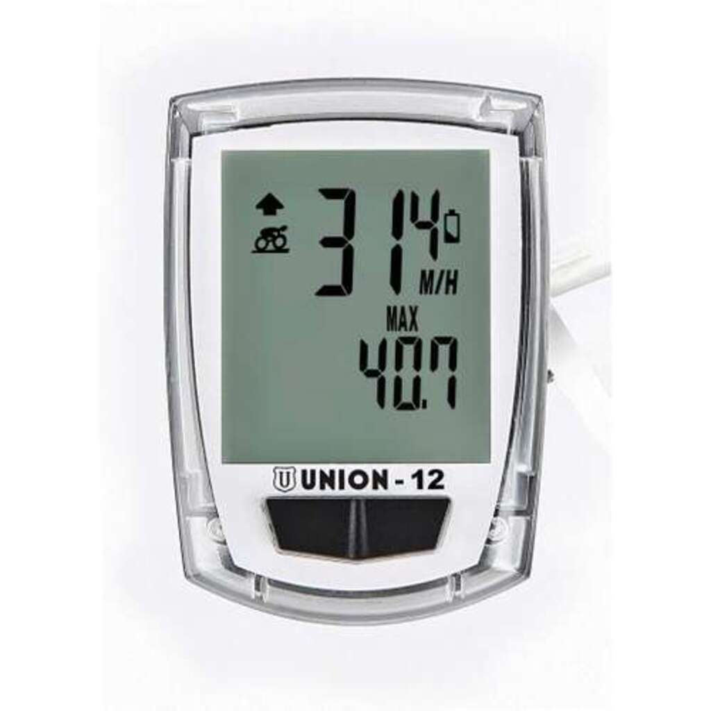 Union fietscomputer 12 functies, snelheid, gemiddelde snelheid, maximum snelheid, ritafstand, totaal afstand, rijtijd, totale rijtijd, snelheidspacer, klok, kalorieverbruik, totale kalorieverbruik, scan ( Marwi)